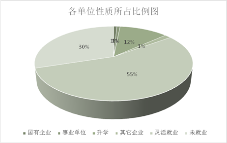 从表4中可以看出开元官网学生就业灵活度较高,虽然签约率(签约率=(签就业协议+ 劳动合同)/ 毕业生总数x100%)比往年都有所提升较,但是灵活就业率普遍较高,其中包括自主创业、个体、私企等较多,这也充分体现了艺术类专业的就业途径较宽。